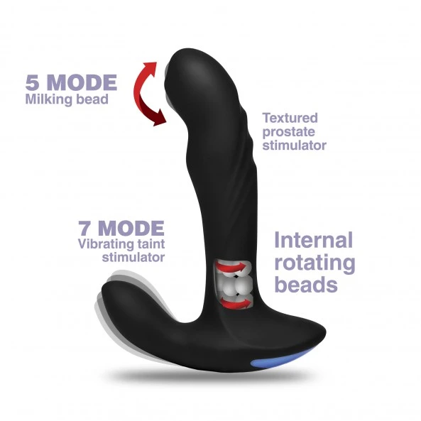 Le Stimulateur Prostatique 17X P-Trigasm 3 en 1 est conçu pour produire des sensations profondes au niveau du Point-P chez les hommes, mais pas seulement. La particularité de ce stimulateur réside dans le fait qu’il agit indépendamment sur 3 parties bien distinctes. Animées par un des 3 puissants moteurs indépendants, le premier, en partie haute aura pour fonction de stimuler le Point-P avec 5 modes d’oscillation de la bille présente dans la tête. Le second stimule le sphincter avec 5 vitesses de rotation des 3 rangées de billes. Enfin, le troisième vibrera sur votre périnée, et ce, avec le choix de 7 modes de vibration différents. La combinaison des 3 vous procurera des sensations nouvelles et franchement surprenantes !