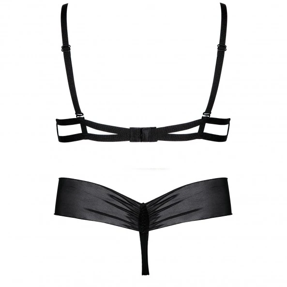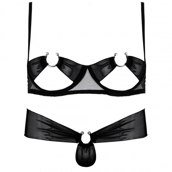 La marque de lingerie Anaïs frappe fort en proposant un modèle à la sensualité exacerbée. Le string ? Minimaliste, avec seulement 3 bandes élastiques reliées par un anneau argenté. Le soutien-gorge ? Des bonnets inexistants, seul un crochet argenté lui aussi vient entourer le téton, l’exposant au regard et laissant le volume de vos seins s’exprimer librement. La coupe est chaude, la tenue audacieuse et le résultat un vrai délice de sensualité, la promesse d’une nuit agitée. Pour vous mesdames, le confort n’a pas été oublié grâce aux nombreux réglages du soutien-gorge.