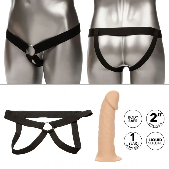 Découvrez le plaisir à son summum avec l’ensemble Gode Ceinture Extension et Harness Performance Maxx Realistic de Calexotics. Ajoutez une nouvelle dimension à vos jeux intimes avec cette extension réaliste et texturée, offrant 5 cm supplémentaires pour une satisfaction intensifiée. Le harnais robuste et adaptable, équipé de sangles larges et élastiques, procure un maintien parfait, tandis que la base large et l’anneau en métal garantissent une stabilité même lors des moments les plus passionnés. Profitez d’une pénétration douce et agréable grâce au design arrondi et à la qualité supérieure du silicone liquide, sans parfum, sans phtalate et 100% waterproof selon les normes IPX7. Informations additionnelles : la profondeur de pénétration est extensible jusqu’à 5 cm pour une satisfaction maximale. La conception creuse texturée réaliste assure confort et ajustement parfait. Totalement sans danger pour le corps, ce kit amplificateur de plaisir vous transporte vers de nouveaux sommets de sensualité.