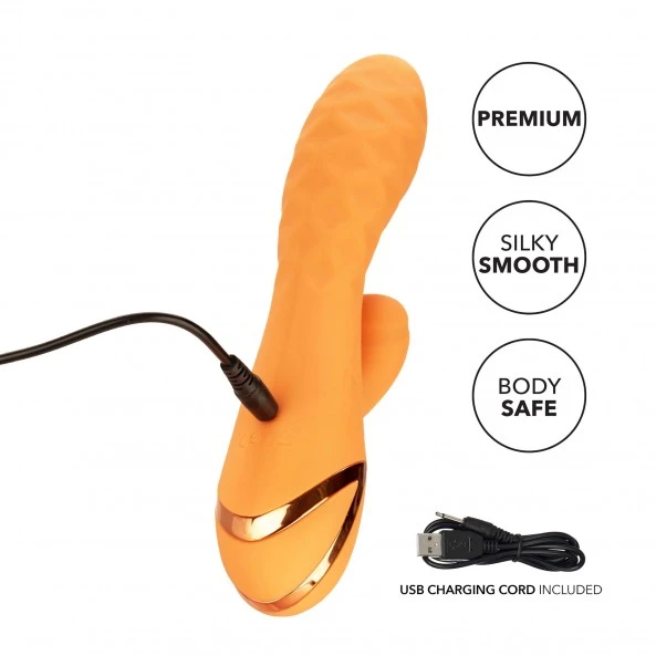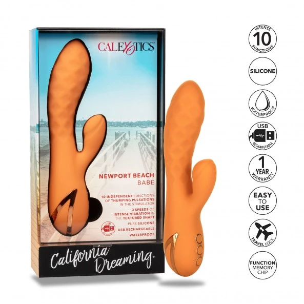 Rabbit Newport Beach Babe est un stimulateur à 2 fonctions indépendantes. Une partie vaginale vibrante destinée au Point-G ainsi qu’un appendice clitoridien pulsatif et également vibrant. La firme Américaine Calexotics et sa fondatrice Susan Colvin sont renommées depuis de longues années en matière de sex-toys ultras efficaces ! Dirigée et exploitée uniquement par des femmes, efficacité et savoir faire, voilà les maîtres mots de la marque.