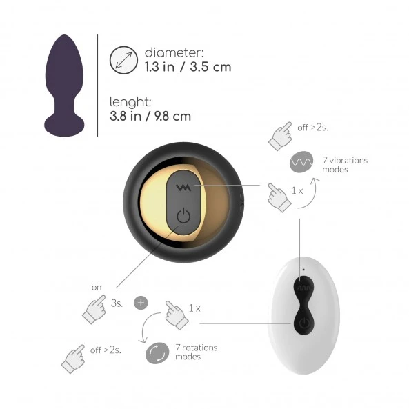 Le Plug Anal Rotatif Télécommandé Twister est un sextoy anal unisexe conçu pour une stimulation anale puissante et profonde. Sa forme en « olive » torsadée permet une insertion douce et contrôlée. Sa large base évite le phénomène d’avalement et comprend les 2 boutons qui vous donneront accès aux 2 X 7 programmes qu’il renferme. Ces derniers sont pilotables à partir de la télécommande fournie dans les limites d’environ 15 mètres de distance. Muni de 2 puissants moteurs indépendants, son action peut être double. D’une part, il peut tourner en oscillant sur lui-même à 360°, et ce, avec 7 programmes possibles. D’autre part, Twister peut également diffuser de 7 manières différentes de puissantes vibrations. L’une ou l’autre de ces 2 fonctions peuvent être activées de façon indépendante ou simultanée. De taille moyenne, ce Plug Twister télécommandé est un véritable bonheur pour tous les adeptes des plaisirs très intimes.