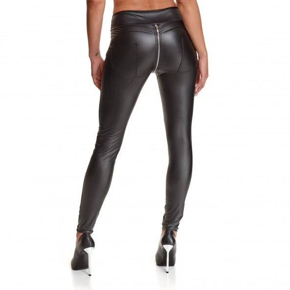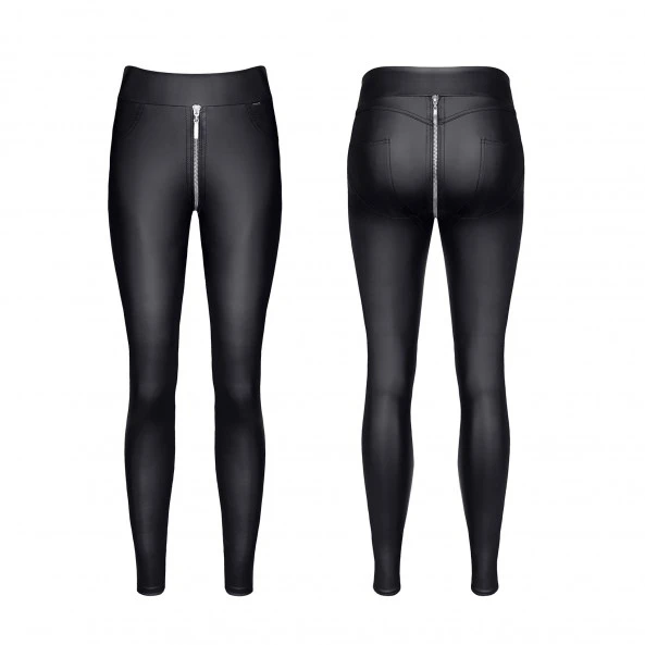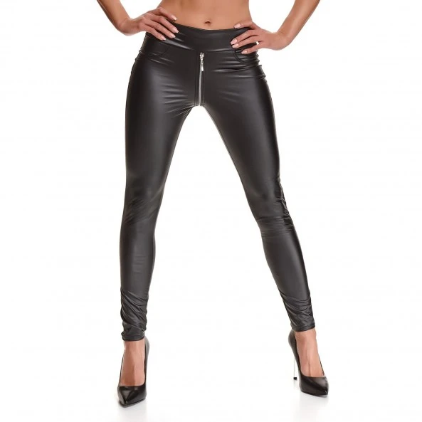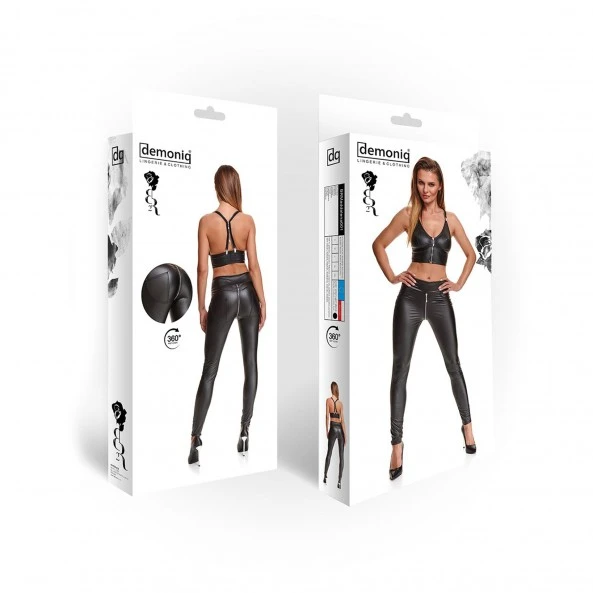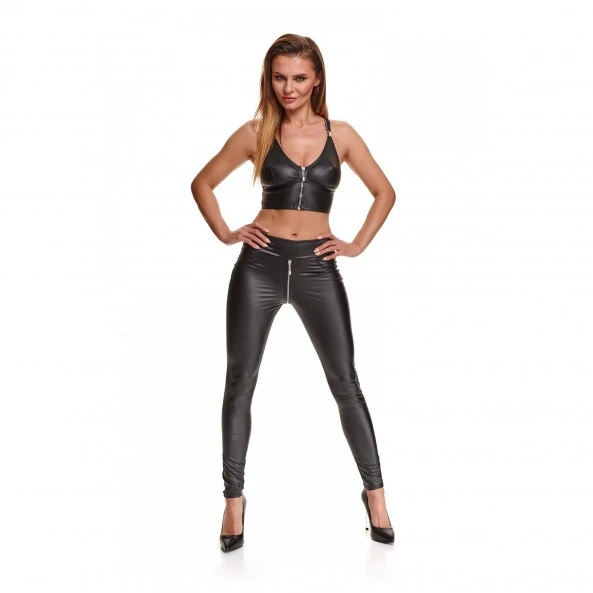 Confectionnée avec un tissu « weetlook » lui donnant un effet de cuir mouillé, la matière est extensible afin de mettre en valeur les courbes de votre silhouette. Il dispose d’une grande fermeture éclair partant du pubis jusqu’au sommet des fesses.