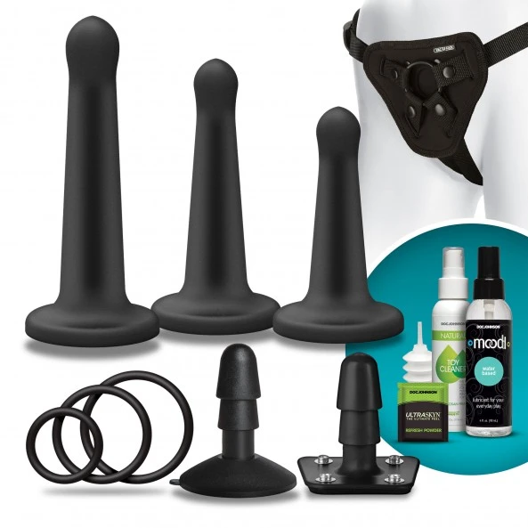 Tout est présent dans ce kit : Un harnais « Strap-on« , le plot de fixation et les anneaux correspondants pour chacun des 3 jouets ainsi qu’un plot ventouse qui permettra une utilisation solo et mains libres. Le système Vac-U-Lock permet de fixer et retirer facilement les godes des accessoires, ils sont de plus compatible avec tous les autres produits Vac-U-Lock Doc Johnson. Présent également dans le kit, un flacon de lubrifiant 120 ml, un flacon 120 ml de cleaner désinfectant garantissant utilisation en parfaite sécurité ainsi qu’un sachet de poudre d’entretien pour accroître la durée de vie des trois jouets.