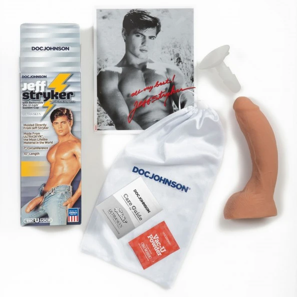 Livré avec du talc, son sac de rangement et une photo dédicacée de Jeff Stryker