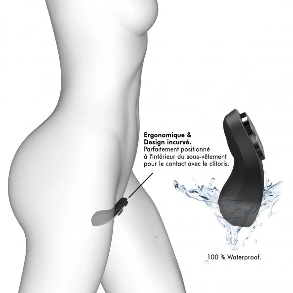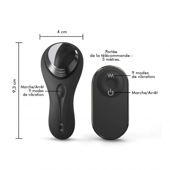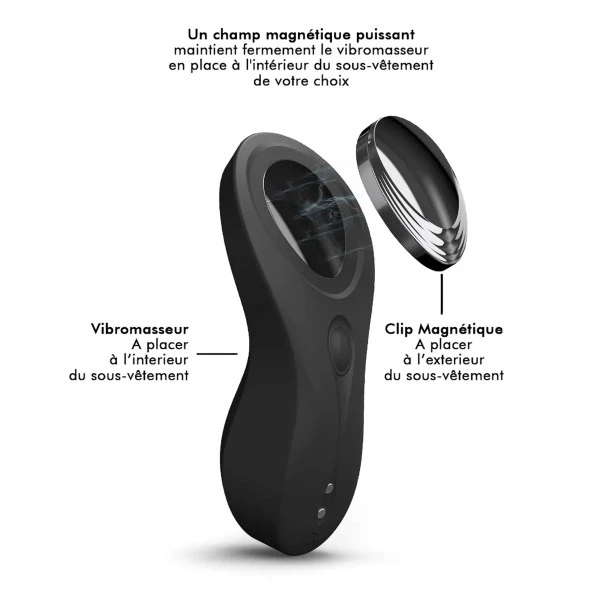 Ce Galet Vibrant Discreet Vibe + est un petit sextoy ultra-discret à placer dans votre culotte. Inaperçu pour tout le monde, sauf pour vous ! Galet vibrant au design irréprochable et moderne, il est sans conteste efficace et bien conçu. Animé par un puissant petit moteur, il vous proposera 9 modes de vibration différents que vous pourrez choisir et activer à l’aide de la petite télécommande fournie. La fixation astucieuse s’opère de la manière suivante : Mettez le Discreet Vibe + sous tension. Pour cela, pressez quelques secondes le bouton sous le galet magnétique de l’appareil jusqu’à que la lumière bleue autour de ce dernier soit visible. Désolidarisez le galet magnétique de l’appareil, puis, placez la partie en silicone dans votre culotte et ajustez le petit dôme supérieur sur votre clitoris. Une fois en place, replacez le galet qui prendra en « sandwich » le tissu de votre sous-vêtement. Prenez en main la petite télécommande. Vous êtes prête pour une expérience mémorable. Il est temps d’activer cette dernière. Mieux, confié-la à votre partenaire et laissez-le jouet avec vos réactions en public. Fous rires et plaisirs garantis !!!