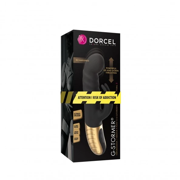 Le vibromasseur Dorcel G-Stormer dispose de deux moteurs distincts permettant une stimulation vaginale et du point G, ainsi que clitoridienne en même temps.