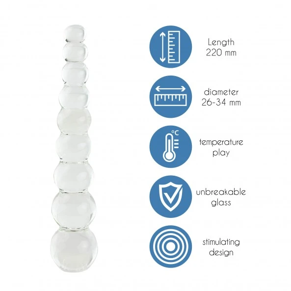 Une utilisation des 2 côtés pour ce modèle Crystal Delight. Un design profilé pour une utilisation vaginale ou anale à l’attention des personnes ayant quand même l’habitude de cette dernière. Pour ce modèle, les diamètres maximum selon le côté d’utilisation sont de 26 mm d’un côté et 34 mm de l’autre. Un bel objet très design, translucide pour découvrir en douceur les plaisirs subtitles des sex toys en verre.