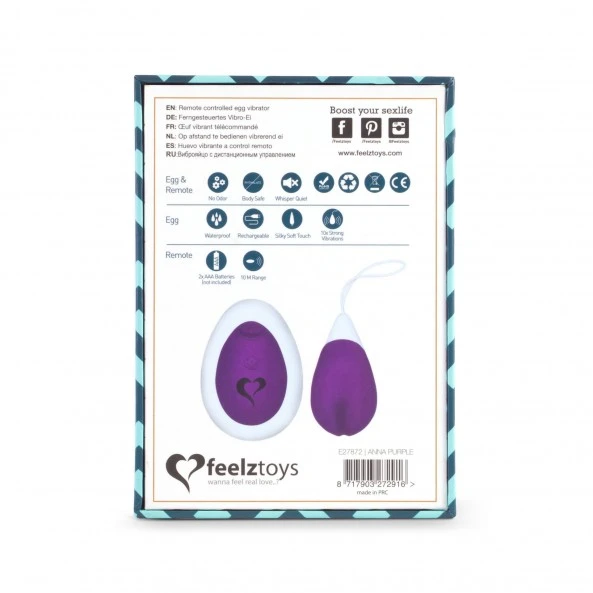 L’Oeuf vibrant télécommandé Feelztoys Anna est réalisé en ABS et silicone de qualité sans phtalate. L’œuf est imperméable, dispose de 10 modes de vibration et se recharge par USB. La télécommande fonctionne sur une portée de 10 mètres et fonctionne avec 2 piles Lr03 AAA (non-incluses).
