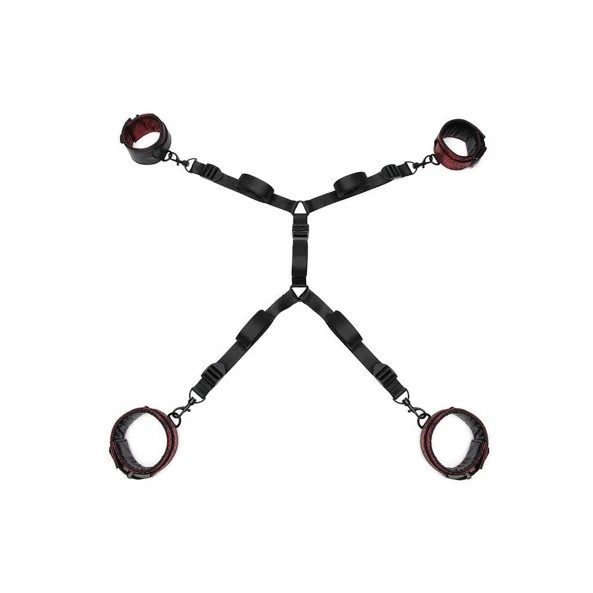 Le Kit Attaches Sous Lit se compose d’une paire de menottes de poignets et d’une paire de menottes de chevilles. Les deux sont rembourrées et réglables. Il contient également une sangle ajustable terminée par des mousquetons qui viendront se connecter simplement aux menottes.