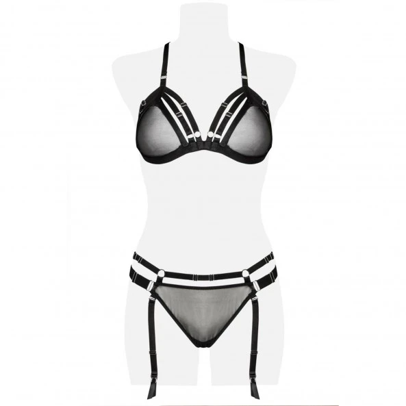 Grey Velvet propose avec ce modèle un ensemble de lingerie à la fois classique et tout à fait réussi. Classique parce qu’il s’agit d’un ensemble soutien-gorge, string et porte-jarretelles. Mais particulièrement réussi, car le contraste des noirs offre un rendu très séduisant. On aime cette maille semi-transparente noire sur votre intimité et les seins, à la façon d’un collant. Et on aime ces coutures épaisses et d’un noir profond. Elles viennent dessiner vos courbes, mettre en valeur votre poitrine pour jouer la carte de la séduction tout en restant dans un ensemble assez sage. Un beau contraste pour une tenue qui ne laissera pas de marbre votre partenaire.