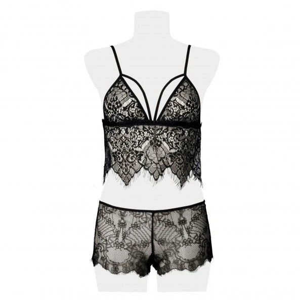 L’Ensemble Dentelle réalisé en dentelle transparente se compose de 2 pièces :