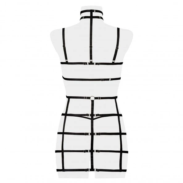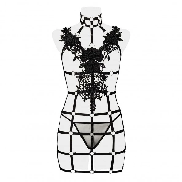 L’Ensemble Nuisette Harnais & String rĂ©alisĂ© en dentelle au crochet et sangles Ă©lastiques se compose de 2 pièces :