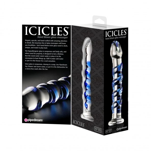 Réalisé en verre borosilicate hypoallergénique, le gode Icicles N°5 est solide, lisse, non-poreux et confortable. De plus, le verre permet d’expérimenter de nouvelles sensations simplement en le passant sous l’eau chaude ou en le laissant un moment au réfrigérateur.