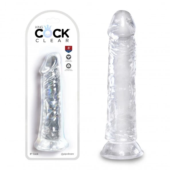 Le Dong Ventouse King Cock Clear 20 cm est réalisé en PVC hypoallergénique, une formule souple, douce et translucide apportant de la clarté et de la lumiÚre à vos fantasmes. Il est totalement waterproof et mesure 21,8 cm (dont 19,7 cm insérable) pour un diamÚtre de 4,6 cm. Facile à nettoyer, sans odeur et non-collant.