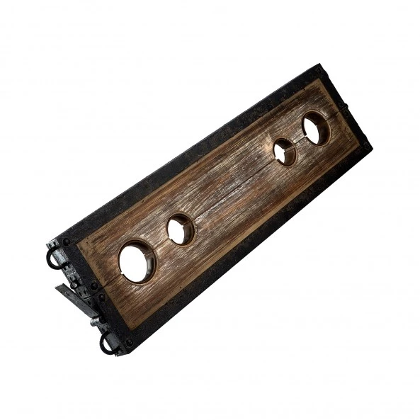 Le Pilori Tickling Pillory Lodbrock est fabriqué en bois de pin néo-zélandais vieilli et renforcé par du métal.