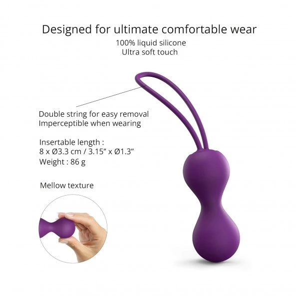 Lisses et ferme, ces Boules de Geisha Joia sont lestées et idéales pour deux actions. La première à une action thérapeutique, car elles peuvent vous aider efficacement pour la ré-éducation du plancher pelvien grâce à la méthode du Dr Kegel souvent utilisée après un accouchement. La musculature du bas-ventre (périnée, vessie, etc…) est fréquemment distendue après l’heureux événement. Les Boules de Geisha corrigeront le problème rapidement. Voilà pour l’utilisation à des fins médicales ! En ce qui concerne l’autre utilisation, elle a un but beaucoup plus récréatif. Une fois en place dans le vagin, elles masseront délicatement les tissus internes de ce dernier pour procurer un plaisir permanent lors du moindre de vos déplacements. La structure interne est creuse et abrite une bille métallique qui accentuera d’avantage le ressentit. vous aurez le choix entre deux coloris : violet ou rose. À consommer sans aucune modération !