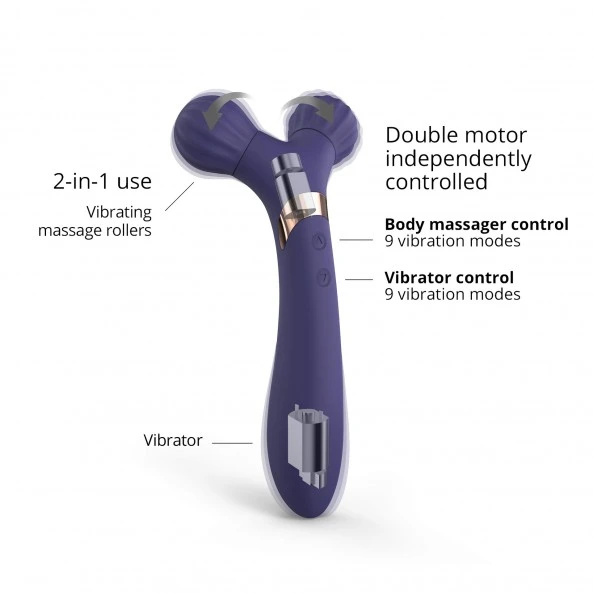 Le Vibromasseur Multifonctions Fireball allie l’utile à l’agréable dans un jouet au design très contemporain. Armé de 2 puissants moteurs indépendants, il vous fera beaucoup de bien et cela de plusieurs façons. La façon conventionnelle est obtenue sur la partie supérieure qui comprend 2 roulettes texturées. Elles sont, bien évidemment vibrantes de 9 manières différentes. Libres de tournées sur leurs axes, elles viendront à bout de toutes vos contractures et douleurs musculaires, et ce, de la plus agréable des manières. La partie inférieure moins conventionnelle, est quant à elle, dédiée à une utilisation beaucoup plus intime. Également vibrante de 9 façons différentes, la partie basse pénétrante aura pour cible l’ensemble des tissus vaginaux et en particulier, votre Point-G. Fireball, sous ses aires de poignée de massage se relève un puissant outil de détente et de plaisir dans tous les sens du terme. Ses moteurs, sa recharge et bien sûr son utilisation rassemble toutes les dernières technologies du moment. À consommer et utiliser sans aucune modération.