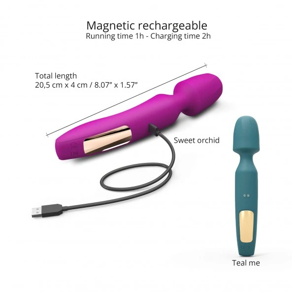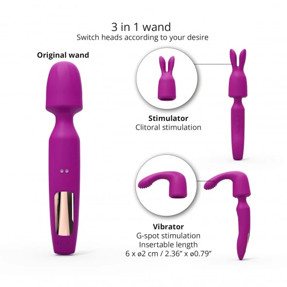 La marque Love to love enrichit sa gamme d’un wand haut de gamme assorti de deux accessoires pour varier les plaisirs. Toujours en tête des vibromasseurs ce type de sextoys est conçu pour délivrer un maximum de plaisirs en un minimum de temps. La marque réussie son pari avec un appareil doté d’un moteur puissant aminé par 16 modes de vibration différentes. Pour ajouter à ce sextoy performant, deux embouts sont adaptables. Le premier aura la fonction de stimuler spécifiquement votre clitoris. Le second, quant à lui agira en profondeur sur la zone du point G. La partie haute de ce jouet est flexible à 360° pour optimiser la précision de la stimulation.