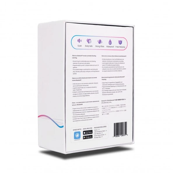 Toutes les technologies récentes sont présentes sur Diamo. Les fonctions de cet appareil offrent une quantité quasi illimitée de combinaisons de vibration et 10 de vos programmes pourront être mémorisés. Il peut être également actionné et dirigé en Bluetooth par votre Smartphone ou Tablette si les 2 appareils sont à proximité. Il est parfaitement dirigeable par votre partenaire qui lui, pourra se trouver n’importe où dans le monde, et ce, via l’application Lovense Remote disponible aussi bien sur l’Apple Store que sur Google Play Store. La recharge se fera via un chargeur et câble USB fournis pendant 1H30 (Charge Complète) pour environ 2H30 d’utilisation.