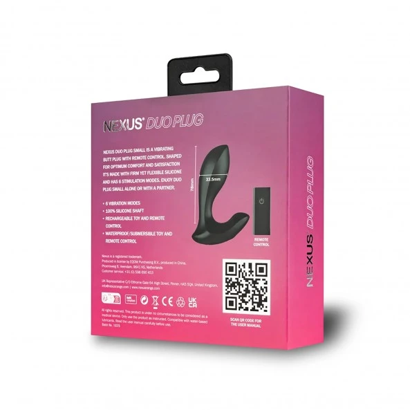 Le Stimulateur Prostatique et Périnée Télécommandé Duo Plug de la marque Nexus est le choix parfait pour ceux qui cherchent un jouet confortable et satisfaisant. Ce jouet est fabriqué en silicone ferme, mais flexible, qui garantit un maximum de plaisir tout en étant confortable. Avec 6 modes de stimulation, incluant des vibrations, des pulsations et des escalades, vous pourrez profiter d’une variété de sensations différentes. La télécommande est très pratique et peut être utilisée jusqu’à une distance de 8 mètres, ce qui le rend parfait pour une utilisation en solo ou en couple. De plus, le Stimulateur Prostatique et Périnée Télécommandé Duo Plug est 100% étanche aux normes IPX7, ce qui signifie qu’il peut être utilisé en toute sécurité sous l’eau, jusqu’à une profondeur de 1 mètre, pendant un maximum de 30 minutes. Les caractéristiques de ce jouet sont idéales pour le débutants, mais aussi pour les confirmés dans la pratique offrant un confort optimal. Ce jouet ultra-sécure est également sans phtalates et sans latex, pour une expérience plus saine et plus sûre. Il est livré avec un mode d’emploi pour une utilisation optimale. Le poids du stimulateur affiche 61 Grs, ce qui en fait un jouet facile à manipuler. En somme, si vous cherchez un jouet de qualité, confortable et satisfaisant, le Stimulateur Prostatique et Périnée Télécommandé Duo Plug de Nexus est un excellent choix. Avec ses caractéristiques complètes pour ce type d’appareil et son design ergonomique, il est parfait pour les débutants dans le jeu anal, mais aussi pour les habitués de la pratique.