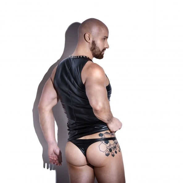Le débardeur Noir Handmade H044 est réalisé dans un tissu doux et souple effet mouillé. Col en V avec laçages.