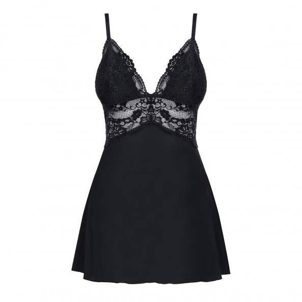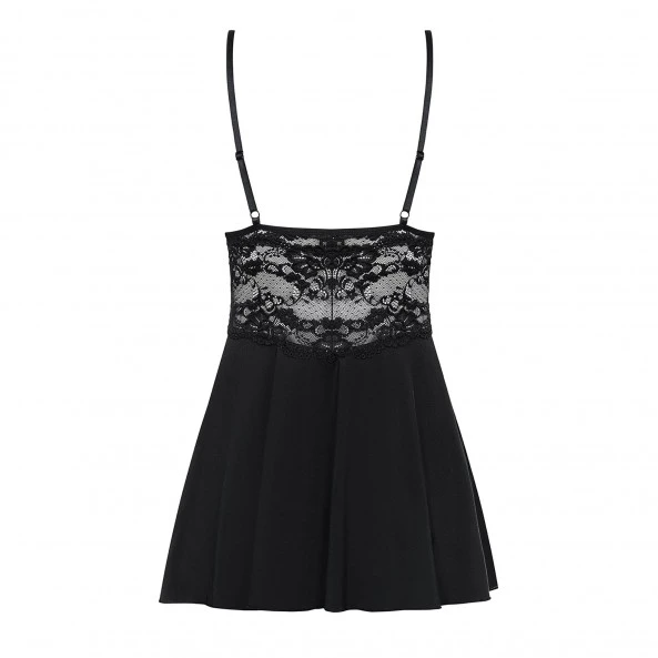Disponible en plusieurs coloris, cette nuisette de la marque Obsessive portant la référence 810-BAB propose une coupe midinette très sexy !