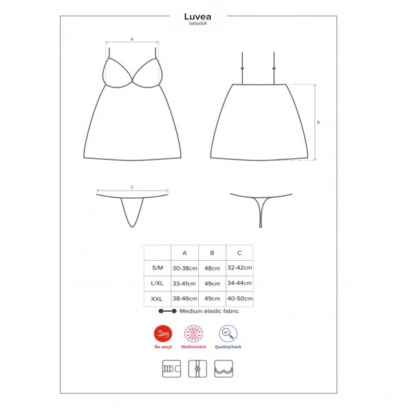 La badydoll est toujours une lingerie très travaillée, à mi-chemin entre la candeur de l’innocence et l’aspect coquin. La babydoll Luvea est exactement cela. On ne peut voir en elle que son côté très sage avec ce tissu satiné noir, opaque et qui va de sous les seins jusqu’au bassin. On peut voir aussi la partie coquine avec les bonnets du soutien-gorge qui ne sont composés que de dentelle, de ce petit bijou placé sur l’entre-sein, de la courte longueur de la babydoll sur les jambes. À bien y regarder, elle est plus coquine que sage, et vous allez l’adorer exactement pour cela.