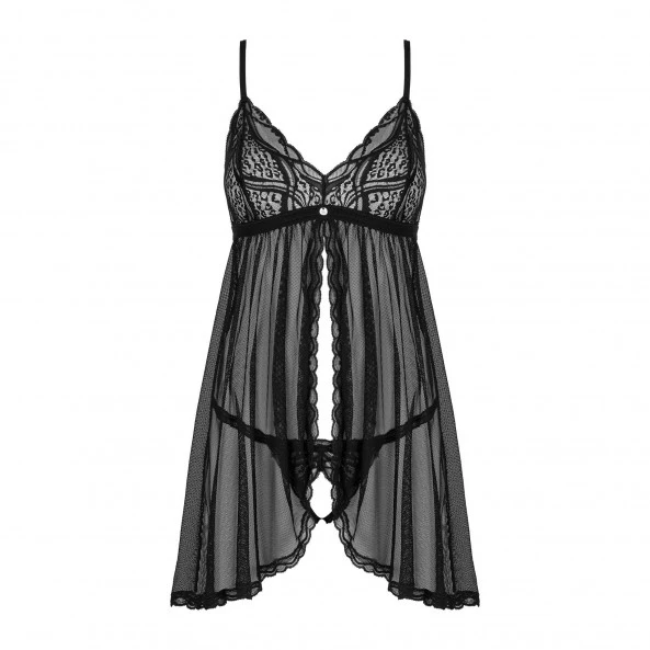 Le babydoll Sedila est une tenue sensuelle et délicate, épicée et coquine, enveloppe votre corps d’une matière aérée et agréable au toucher qui vous emmène tout droit dans les bras du plaisir. Elle comprend un soutien-gorge confortable et doux, un pendentif bijou sur le buste pour ajouter de l’élégance, une ouverture séduisante sur le devant qui révèle le corps de manière sexy, des bretelles réglables croisées dans le dos pour un look fantastique et agréable à porter, un décolleté profond dans le dos pour un élément très féminin, une matière aérée et délicate qui souligne sensuellement la silhouette, une bordure en dentelle pour ajouter du sex-appeal, et un string ouvert pour des sensations épicées.