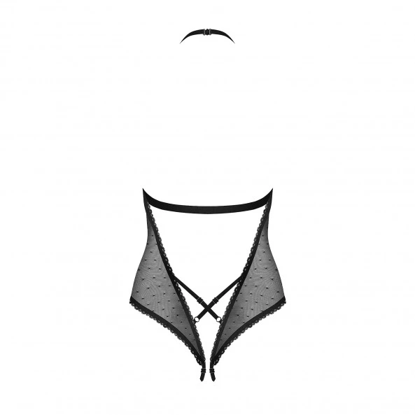 Terriblement sexy sans oublier l’élégance, ce Body Ouvert Mauress reprend tous les codes de la séduction implacable. La poitrine généreusement mise en valeur pourra être totalement libérée si votre partenaire se met à jouer avec l’attache d’entre seins. Les hanches sont, elles aussi mises en valeur avec de larges échancrures. L’entre-jambe de ce body finit de démasquer vos coquines intentions. Il est, bien entendu ouvert et réglable à l’arrière pour un ajustement parfait et tendu. La bretelle sur le cou est-elle aussi réglable pour un port lissé sans bâillements. La marque, comme toujours n’a pas oublié de placer son petit pendentif métallique en lieu et place de votre nombril. Encore une belle réussite sans surprise de la marque Obsessive ! Les caches-seins « Nippies » sont vendus séparément.