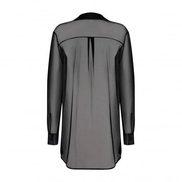 Echancrée des deux côtés, elle laisse deviner vos atouts sans trop en dévoiler. Pour rajouter du charme et de la finesse, vous retrouverez des empiècements en satin sur les poignets, le col ainsi que sur la fermeture boutonnée.