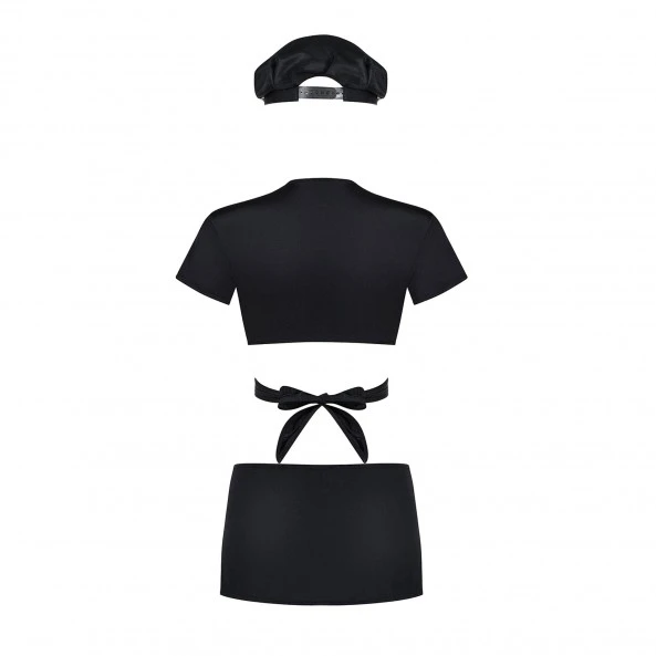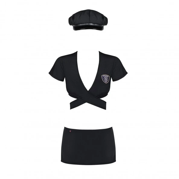 Il y a fort à parier que si les forces féminines de l’ordre s’habillaient dans cette tenue, il y surement un peu plus de bonnes volontés à respecter les contrôles routiers et les interrogatoires. Ce déguisement, c’est d’abord une mini-jupe noire, fendue sur les côtés presque à la hauteur de la hanche. Le crop top noir lui aussi met bien en avant la poitrine tout en s’attachant de façon élégante dans le dos. Même la casquette peut être sexy. Au-delà de la qualité, après tout on est sur un produit Obsessive, vous aimerez le tissu doux et élastique qui permet d’être porté confortablement en toutes circonstances.
