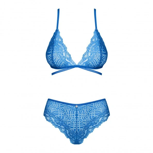 L’ensemble Bluellia d’Obsessive est une lingerie sexy et délicate en dentelle bleue avec des lanières qui épousent la poitrine, vous offrant un look sage mais très tentant en même temps. Il est fabriqué avec un tissu extensible et transparent, le soutien-gorge a une fermeture et des bretelles réglables pour un ajustement facile. Le design inclut également des lanières sous la poitrine pour ajouter du charme. La culotte est dans une coupe classique pour un confort exceptionnel. L’ensemble comprend un soutien-gorge et une culotte.
