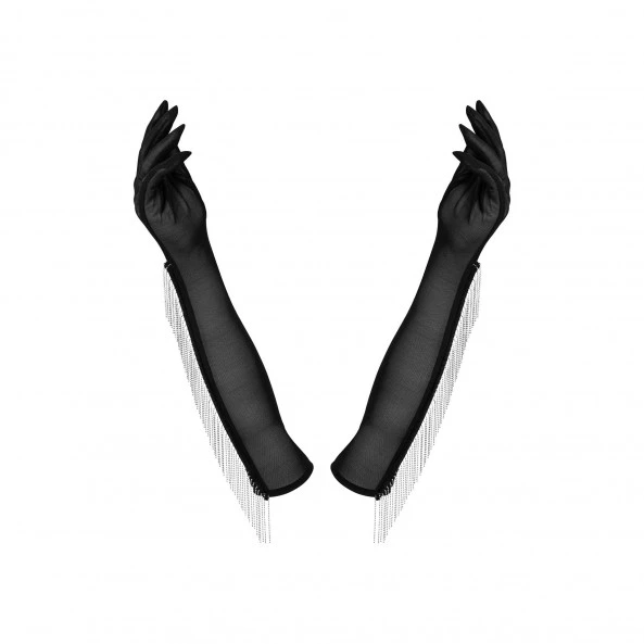Les gants Milladis de la marque Obsessive sont des gants élégants faits de maille transparente avec des perles le long des poignets et des coudes. Ils sont conçus pour être sensuels et peuvent être utilisés dans des situations de jeu ou de fantaisie. Ils sont faits de tissu élastique pour s’adapter à la forme des mains.