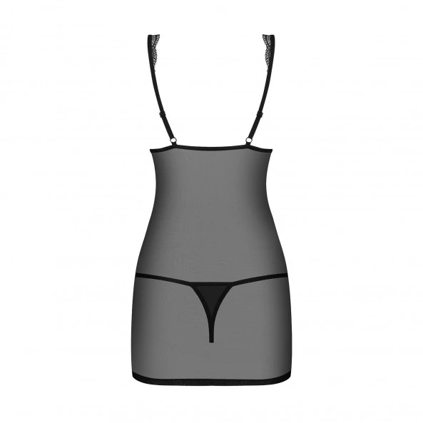 Vous vous dites que la nuisette, c’est de la lingerie vue et revue, que vous ne pouvez plus être sexy avec une nuisette, aussi courte soit-elle ? C’est peut-être parce que vous n’avez pas pris le temps de découvrir les nouveaux modèles de chez Obsessive. Réputée pour la qualité de ces collections et leur caractère hétéroclite, Obsessive propose ici une nuisette qui va ravir votre partenaire. Toute de maille très fine, elle joue sur la transparence sur tout votre corps. On apprécie en particulier la dentelle qui dessine votre poitrine et dont le liseré gris métallique permet de ne surtout pas passer inaperçue. Très courte, elle est fournie avec le string qui complétera cette tenue à la fois romantique et affriolante.