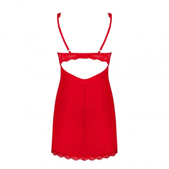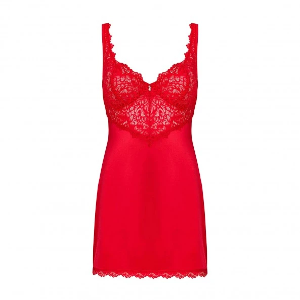 La nuisette Amor Cherris de la marque Obsessive est une nuisette rouge moulante avec un ensemble string assorti. Elle est fabriquée en dentelle féminine qui ajoute de l’élégance et est coupée de manière sensuelle pour mettre en valeur la silhouette. Elle dispose de bretelles réglables décorées pour un ajustement parfait, d’un soutien-gorge à armatures pour donner une belle forme à la poitrine et d’une fermeture réglable à l’arrière pour plus de confort et de commodité. La nuisette est également décorée de bijoux sur le buste pour un charme supplémentaire. Elle est fabriquée dans une matière agréable et délicate.