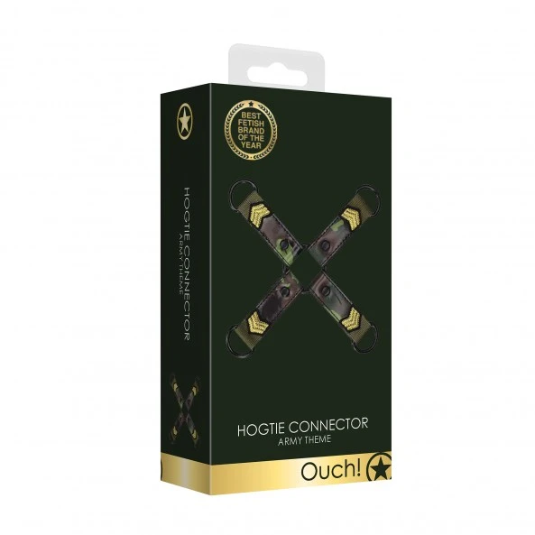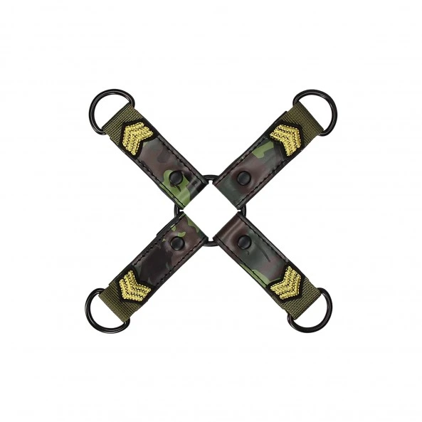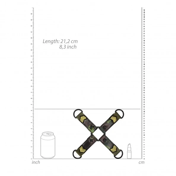 Le Hogtie Army Theme Ouch! se connecte à vos menottes de poignets et menottes de chevilles Army Theme afin d’offrir une contrainte en croix à votre partenaire. (menottes vendues séparément)