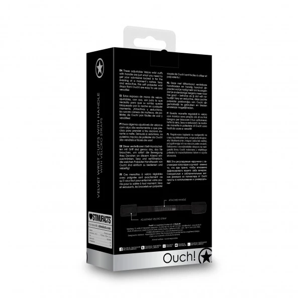 Accessoire de domination par excellence, cette Paire de Menottes Poignets Ajustables se règle de manière ultra précise, car la fixation se fait par adhésion Velcros. Placée devant ou dans le dos vous dirigez votre esclave là où vous le désirez en le maintenant fermement grâce à la poignée rigide qui relie les deux bracelets. Le confort est partie prenante dans cette gamme, puisque la plupart des accessoires V&V possèdent une doublure en velours. Le confort de cette doublure velours vous permettra de porter ou de faire porter cet accessoire pendant plusieurs heures. Comme tous les accessoires de la marque Ouch !, l’efficacité et la fermeté sont présentes et pourront facilement contenter vos ébats dominant/dominé !