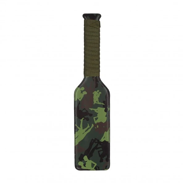 Le paddle Ouch! Army Theme est fabriqué en pvc, nylon et métal et mesure 38 cm de longueur pour 9,7 cm de largeur. Un produit robuste et légèrement flexible qui saura punir votre partenaire comme il le mérite.
