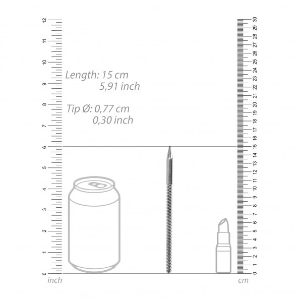 Cette longue Tige Urétrale Nervurée en acier inoxydable est dédiée aux personnes aguerries aux pratiques extrêmes du BDSM. Sa forme allongée (150 mm) est utilisable dans les 2 sens. D’un côté, elle commence par un cône progressif puis une partie nervurée d’une longueur de 100 mm qui feront frémir votre partenaire à chaque insertion et à chaque retrait. Vous pourrez également l’utiliser directement du côté nervuré. L’urètre est une zone très innervée et incroyablement érogène capable de procurer des sensations de plaisir puissantes et hors du commun. Elle n’est pas creuse et empêche donc, la miction et l’éjaculation. La douceur de la matière permet une insertion facile et sans douleur. Grâce à cette dernière et ses propriétés thermoréactives, cette tige peut être mise à températures chaude ou froide selon les envies. Sensations intenses à découvrir ou redécouvrir pour les personnes averties.