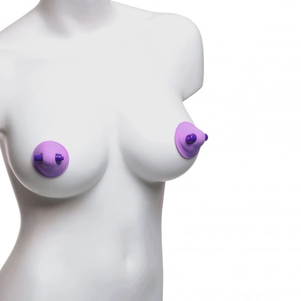 Pour plus de détails : Les coques des caches sont en silicone doux et souple et de très haute qualité. Chacun d’eux est muni d’un mini-vibromasseur de type « Bullet » animé par un seul mode de vibration. Ils fonctionnent chacun avec 3 piles de type LR41 fournies. Auto-porteur par effet ventouse, ils mesurent environ 5 cm de diamètre pour une épaisseur de 2 cm. Les coques en silicone sont complètement waterproof, mais pas les mini-vibromasseurs.