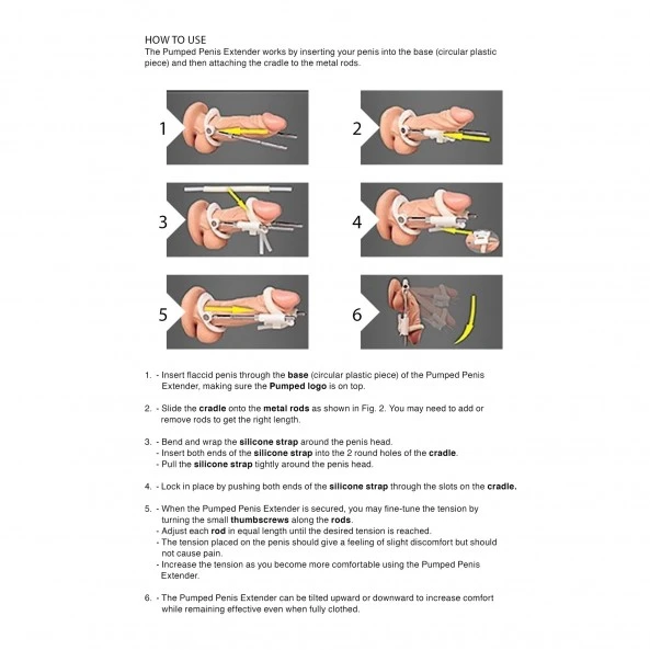 6. Notez que la traction exercée par l’extenseur entraîne une réaction d’adaptation de la structure des tissus péniens, ce qui conduit à une multiplication cellulaire et une augmentation permanente de la taille du pénis.
