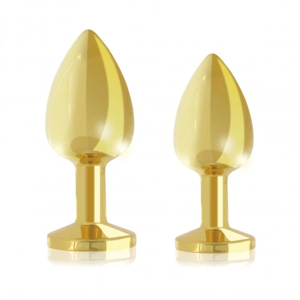 Rianne’S nous propose un coffret Luxury Set de plugs anal en métal de couleur or et avec une fausse pierre précieuse à la base du plus bel effet.