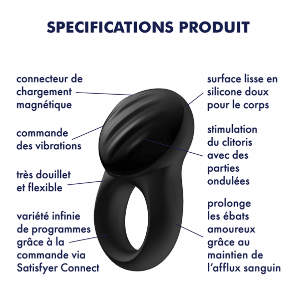 Satisfyer Signet Ring est anneau vibrant connecté permettant une stimulation clitoridienne lors des rapports et augmentant les performances masculines en retenant le flux sanguin.