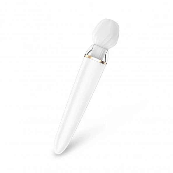 Le Double Wand-Er Connecté est version bodybuilder du Wand-er standard. Plus puissant, connecté et doté de 2 têtes interchangeables qui feront toute la différence ! Le plus imposant de l’ensemble de la gamme Satisfyer est une véritable machine à orgasmes. Muni de 2 têtes interchangeables, l’une destinée à la stimulation du clitoris (normal, pour un Wand), l’autre, pénétrante et recourbée est spécialement conçue pour une stimulation exceptionnelle du Point-G. Ces 51 programmes d’usine sont utilisables à partir de l’appareil lui-même ou d’un Smartphone via une interface Bluetooth et son application gratuite Satisfyer Connect®. Cette application est disponible sur l’App Store® et Google Play® et vous donne accès à toute une série de programmes et modes de fonctionnement complètement personnalisable. Du haut de ces 33 cm de long, la discrétion visuelle n’est pas vraiment son fort. En revanche, il est doté d’un mode silence qui est très appréciable surtout pour ce type de jouets souvent bruyants.