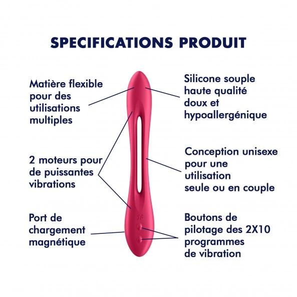 Le Stimulateur Multiple Elastic Joy est un jouet léger, discret, puissant et plein de ressources. Petit, lisse et ultra-souple, il est conçu pour des utilisations multiples et variées dans toutes les positions. Il sera répondre à quasiment toutes les demandes. Pour Madame, il stimulera la zone clitoridienne, mais aussi la zone vaginale et le Point-G, et ce, de manière indépendante ou simultanée. Muni de 2 puissants moteurs indépendants, il pourra être utilisé seul ou en couple. Pour monsieur, l’ouverture centrale pourra faire d’Elastic Joy un remarquable anneau d’érection tout en vibrant également sur le clitoris de votre partenaire de jeux coquins. Bref ! Discret, pluridisciplinaire, il deviendra rapidement votre compagnon préféré de vos ébats sexy. Vous trouverez à l’intérieur du rabat de sa boîte, plus d’une quinzaine d’illustrations représentant un éventail fourni d’utilisations différentes. Elastic Joy est idéal pour un premier achat sex-toy. À acquérir de toute urgence !
