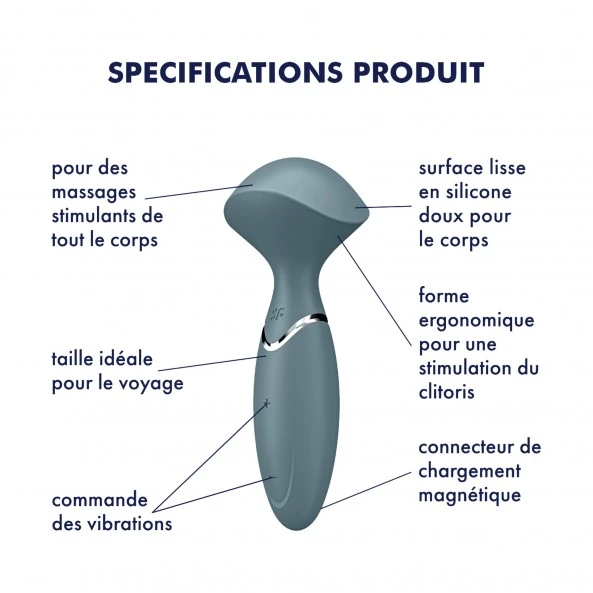 Découvrez la magie avec le tout nouveau Vibromasseur Mini Wand-Er. Ce jouet signé Satisfyer n’est rien de moins que la baguette magique qui vous transportera dans un univers de plaisir intense ! Avec sa taille compacte de 16 cm, il est idéal pour les voyages et les débutants souhaitant ajouter une nouvelle version d’un design classique à leur collection. La pointe arrondie et la forme droite offrent une esthétique élégante, tandis que le ressort dans la moitié supérieure de l’appareil génère une tête plus flexible pour une stimulation clitoridienne optimale. Vous profiterez même d’un massage complet du corps en profondeur grâce à l’énorme puissance de ce petit bijou ! Avec 12 programmes de vibrations, vous pourrez facilement passer d’un paramètre à l’autre à l’aide des boutons +/- intuitifs. Le Mini Wand-Er est en silicone doux pour le corps, rechargeable et 100% étanche (IPX7). De plus, le mode chuchotement, la batterie aux Lithium-Ion, le câble de charge magnétique USB inclus et sa facilité de nettoyage font du Mini Wand-Er l’accessoire idéal pour des moments de plaisir intenses et vous feront oublier tous vos soucis. Alors, agitez cette baguette magique à votre façon et laissez-vous transporter dans l’univers magique de la stimulation intime !