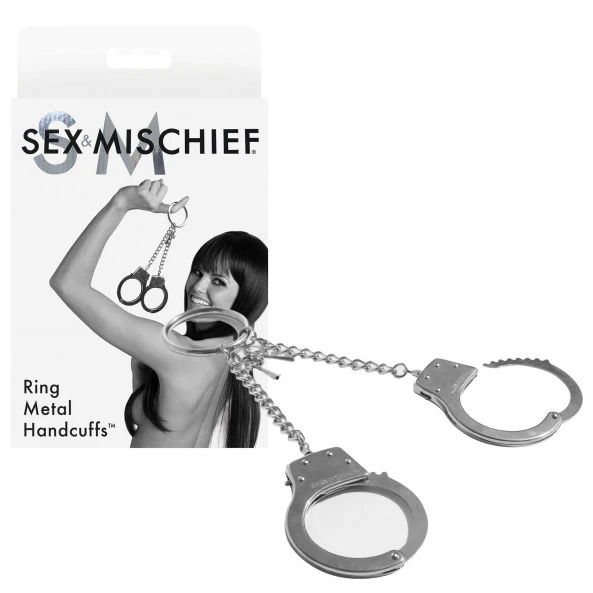 Les menottes métalliques avec Anneau Sex & Mischief disposent d’une paire de menottes reliée à un anneau par des chaînettes.