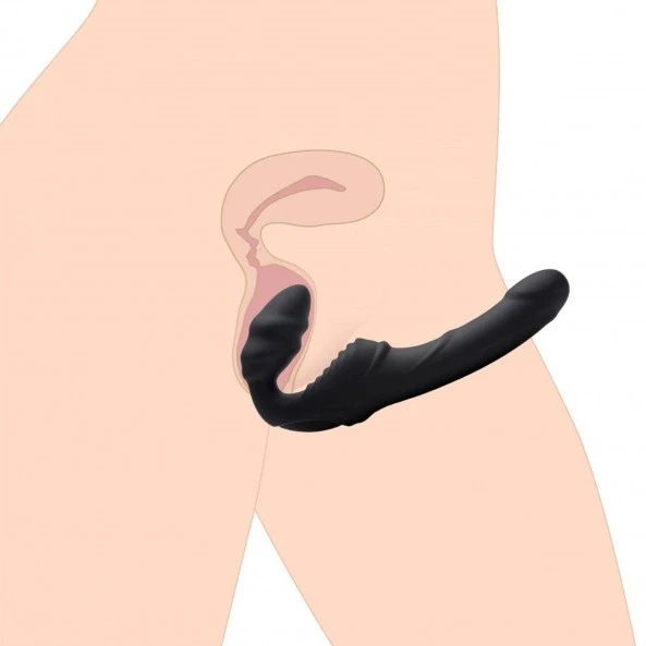 Le Gode Strapless Vibrant Slim Rider Ribbed est double sex-toy plein de ressources. Les deux parties, « donateur » et « receveur » sont animées chacune par 1 moteur. La partie « donateur » est un ovule vaginal de 7,6 cm de longueur dont la texture est idéale pour une stimulation profonde et en particulier la zone du Point-G. 6 modes de pulsation sont disponibles sur cette dernière. La partie « receveur » est une hampe ayant la forme d’un pénis de 12,7 cm de longueur et 3,3 cm de diamètre. Cette 2ème partie comprend son propre moteur avec 9 modes de vibration et 3 vitesses de vibration. Le patin clitoridien est texturé avec 7 vaguelettes et bénéficiera des vibrations des 2 moteurs à proximité.