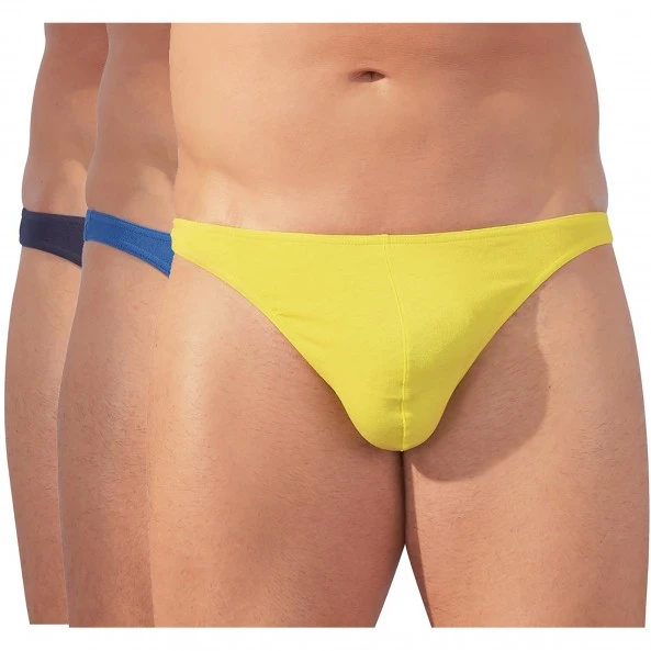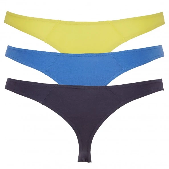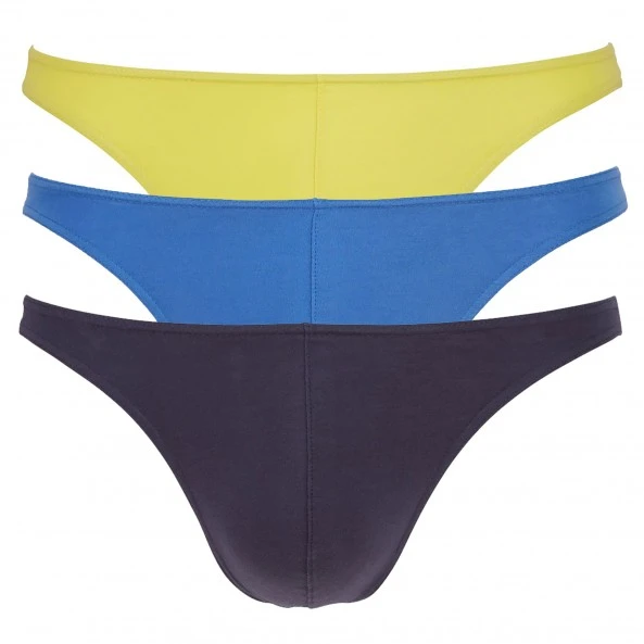 Contient : un string bleu royal, un string bleu foncé et un string jaune.