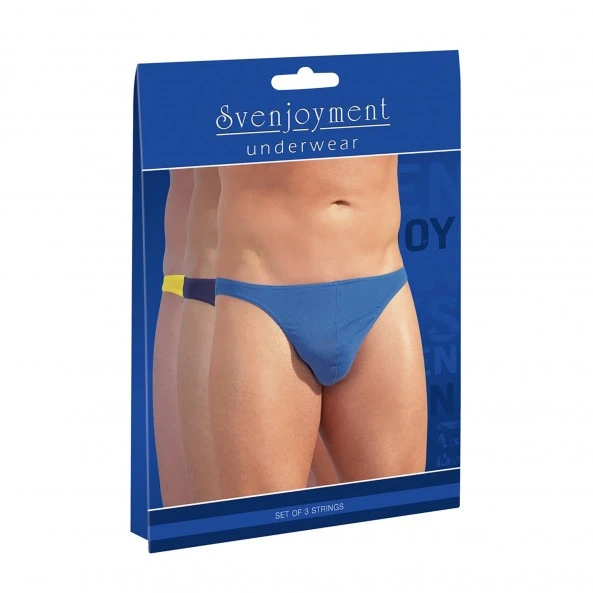 Svenjoyment nous propose le pack que tout homme devrait avoir dans sa commande. Un pack de 3 strings colorés confortables, simples et sexy.